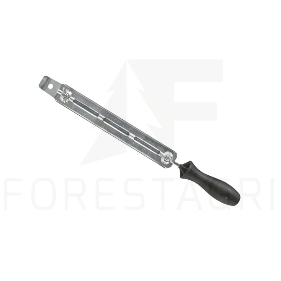 Uchwyt pilnika z podziałką stopni do precyzyjnej obróbki łańcucha. Pilniki wymienne. Każdy pilnik w zestawie razem z rączką. Ø pilnika (mm):4,0Długość (mm):215