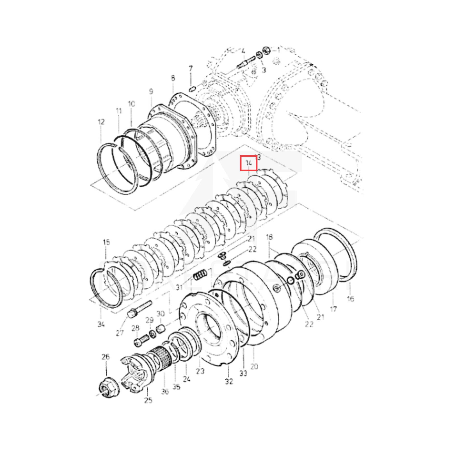 Der Abstandhalter befindet sich im Bremsmodul der Maschinenachse und arbeitet mit den Bremsscheiben zusammen. Er hat eine Abstands- und Stabilisierungsfunktion, damit das Bremssystem reibungslos und effektiv funktioniert. Er beeinflusst das korrekte Anpressen der Bremsscheiben, die Bremswirkung der Forstmaschine und die Sicherheit des Bedieners während des Betriebs.