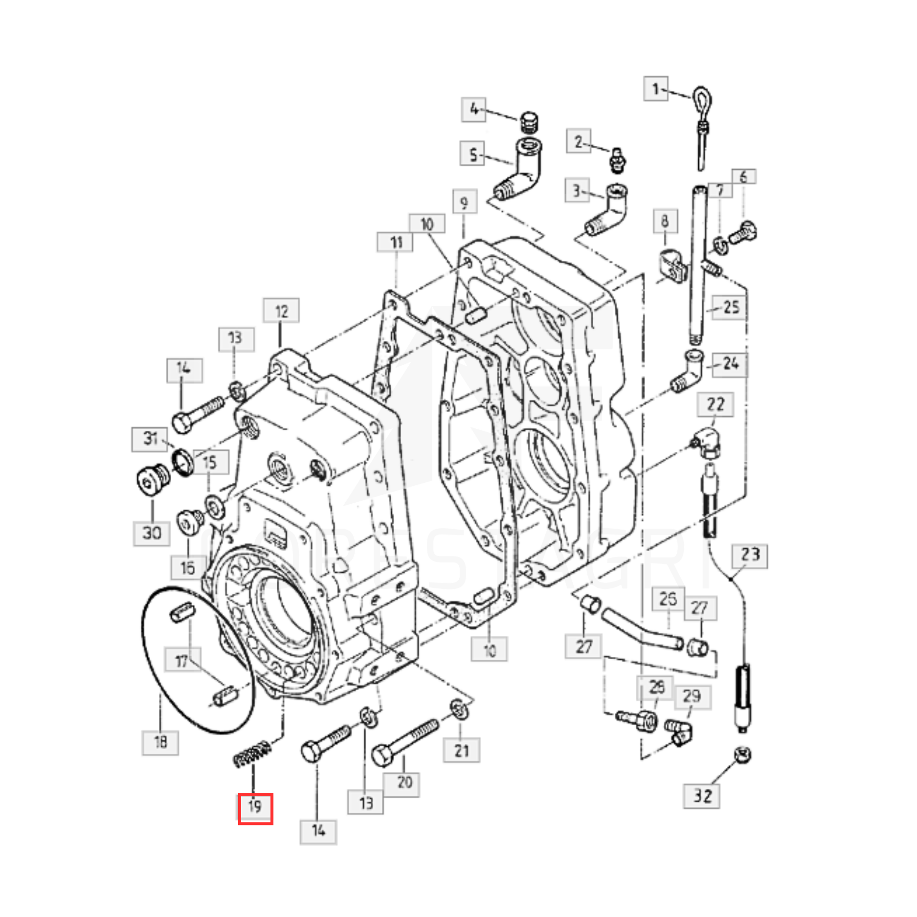 Die Feder ist im Inneren des Gehäuses des Übertragungssystems montiert (gemäß der technischen Zeichnung - Punkt 19). Dieses Element arbeitet in direktem Kontakt mit anderen Komponenten, so dass sein korrektes Funktionieren einen erheblichen Einfluss auf die Haltbarkeit und Zuverlässigkeit des gesamten Systems hat.