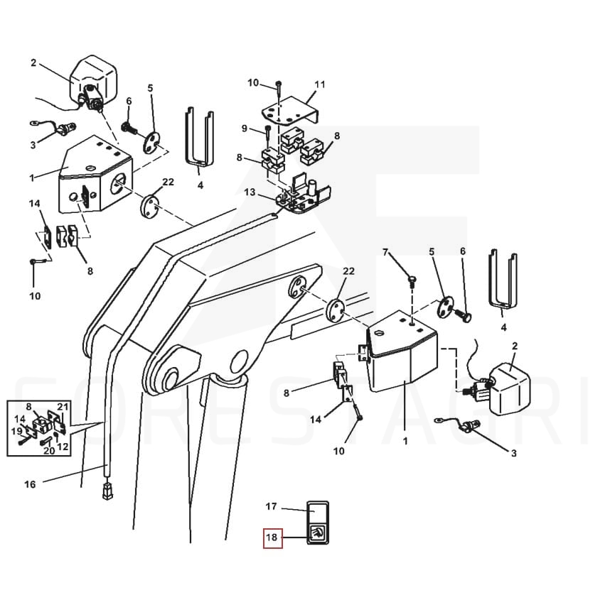 Gebrauchter Lichtschalter für die Beleuchtung, die am Kran einer Forstmaschine montiert ist.