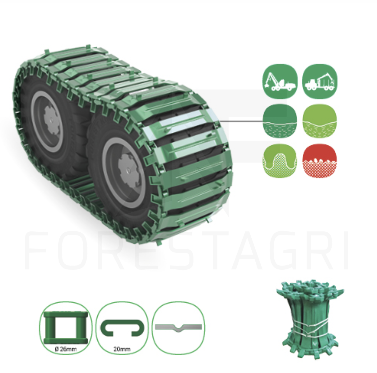 GreenTrack Soft to innowacyjne gąsienice zaprojektowane z myślą o specyficznych wyzwaniach terenów miękkich i bagnistych, gdzie priorytetem jest zachowanie naturalnego środowiska i minimalizacja wpływu na grunt leśny. Dzięki specjalnemu kształtowi profilu, te gąsienice oferują znakomitą przyczepność i stabilność maszyny, jednocześnie zapewniając dużą powierzchnię styku, co przekłada się na mniejsze zagrożenie dla runa leśnego.