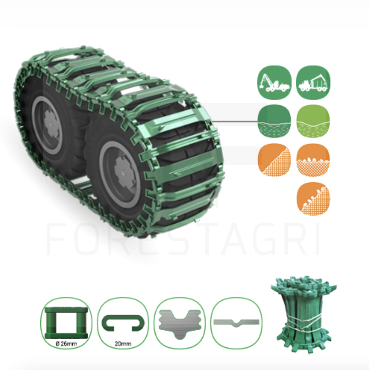 GreenTracks Combo GS to gąsienice zaprojektowane dla tych, którzy nie akceptują kompromisów w zakresie przyczepności i wytrzymałości. Wybierając to rozwiązanie, zapewniasz swojej maszynie przewagę w najbardziej wymagających środowiskach.