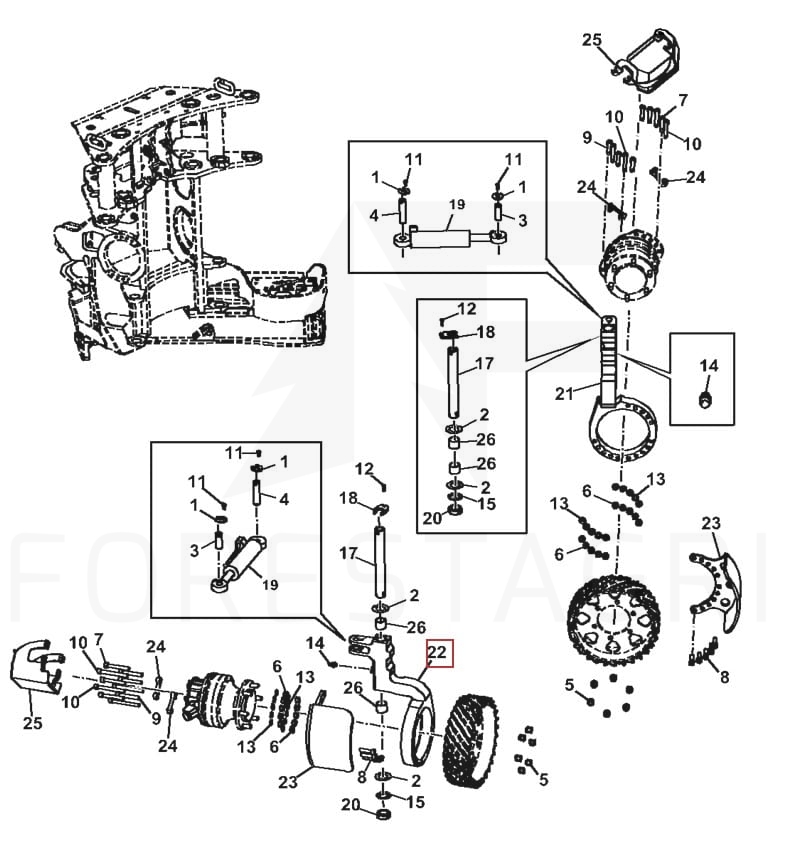 Das Teil passt in Harvesterköpfe: 758HD, H480, H270, H270E und ist nur mit Poclain-Motoren kompatibel.
