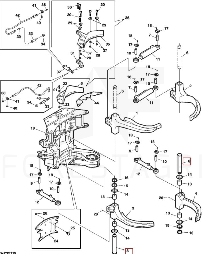 Spreizstift im Harvesterkopf, zwei an der Zahl. Mit diesem Bauteil wird das untere Entastungsmesser am Rahmen des Harvesterkopfes befestigt. Es ist somit für eine stabile Verbindung und den korrekten Betrieb der Messer während des Entastungsvorgangs verantwortlich.