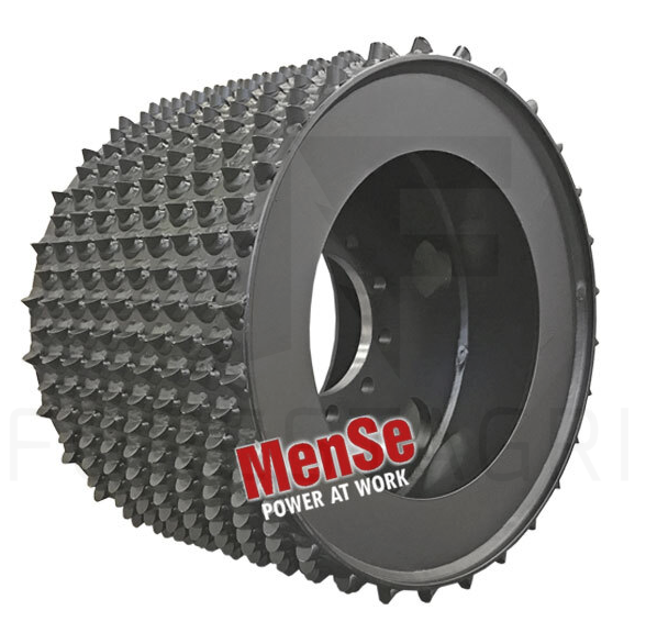 Kolce rolki podającej są wykonane z odpornej na zużycie stali. Asymetryczny kształt zapewnia maksymalną przyczepność podczas podawania pnia do przodu. Żywotność stalowej rolki podającej można łatwo wydłużyć, korzystając z usługi regeneracji MenSe. Stalowa rolka podająca jest podstawową, ekonomiczną i lekką opcją.