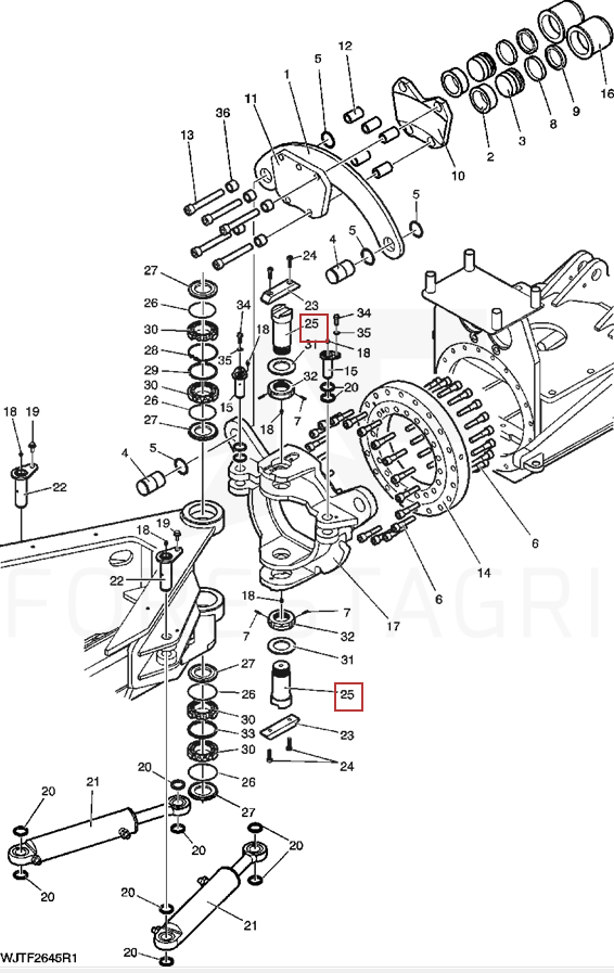 Ein Schlüsselelement des Mittelgelenkmechanismus einer Forstmaschine. Er besteht aus zwei Teilen, von denen einer von oben und der andere von unten in den Zapfen eingebaut wird.