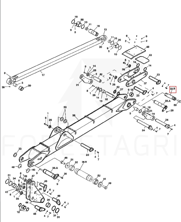 Ein Stift, der eine bewegliche Verbindung zwischen dem Harvesterkopf und dem Kranarm bildet. Er sorgt für Stabilität bei der Holzernte. Er zeichnet sich durch seine hohe Belastbarkeit aus, was eine lange Lebensdauer gewährleistet und das Risiko von Ausfallzeiten minimiert.