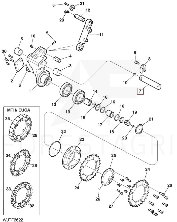 Der im H412-Harvesterkopf vorhandene Stift. Ein Element, das für die ordnungsgemäße Funktion des Holzlängenmesssystems erforderlich ist. Es ist für eine stabile Verbindung des Messradarms mit dem Kopfrahmen verantwortlich.