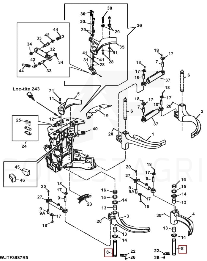 Der Stift, mit dem das untere Entastungsmesser am Harvesterkopf befestigt ist. Er ist eine Schlüsselkomponente, die Stabilität und sicheren Betrieb beim Entasten von Holz gewährleistet.