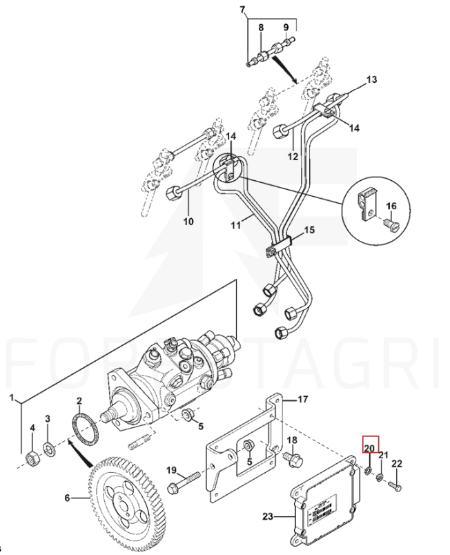 Unterlegscheibe, die unter der Schraube zur Befestigung des ECU-Moduls und des Steckers des Einspritzleitungsbündels verwendet wird.