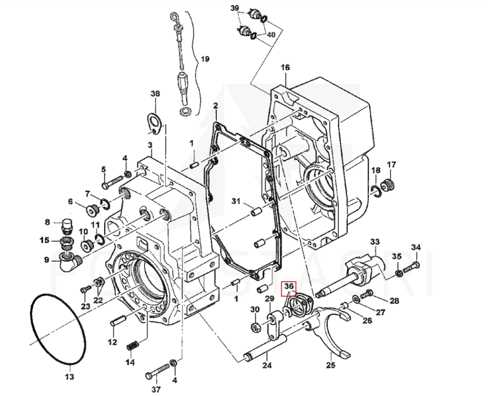 Distanzunterlegscheibe-Kit für das Getriebe.