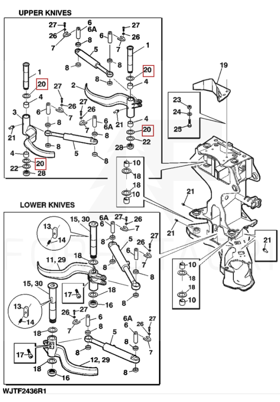 Obere Messerunterlegscheibe, montiert in Harvesterköpfen.