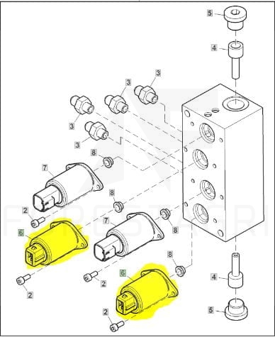 Der Magnetventil F676467 ist ein Schlüsselelement, das in den Hydraulikblöcken eingesetzt wird, die für die Drehfunktionen der Kabine und die Steuerung der Planierraupe verantwortlich sind. Dieser Ventil gewährleistet eine präzise und zuverlässige Kontrolle der Hydraulikfunktionen und ermöglicht ein reibungsloses Manövrieren der Kabine und der Planierraupe.