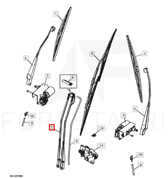 Wischerarm für John Deere Forstmaschinen entwickelt. Er ist aus langlebigen Materialien gefertigt und gewährleistet die einwandfreie Funktion des Wischers AL207461.